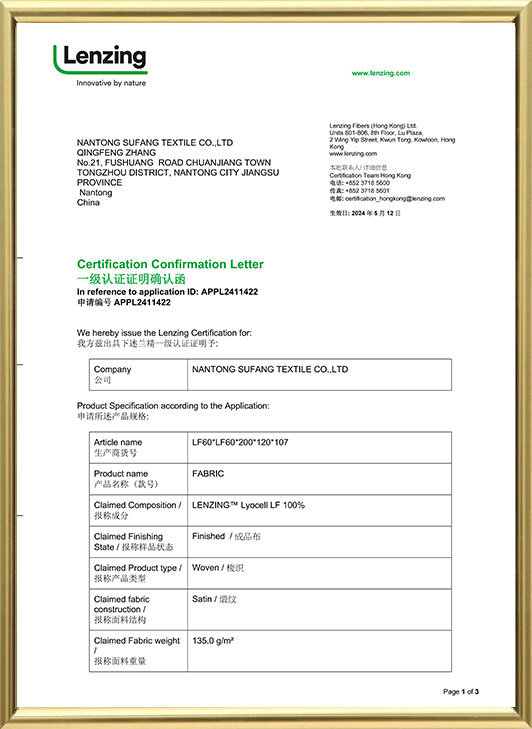 ใบรับรอง Lenzing tencel