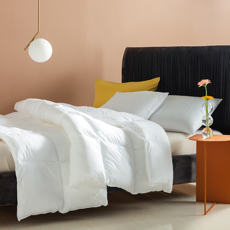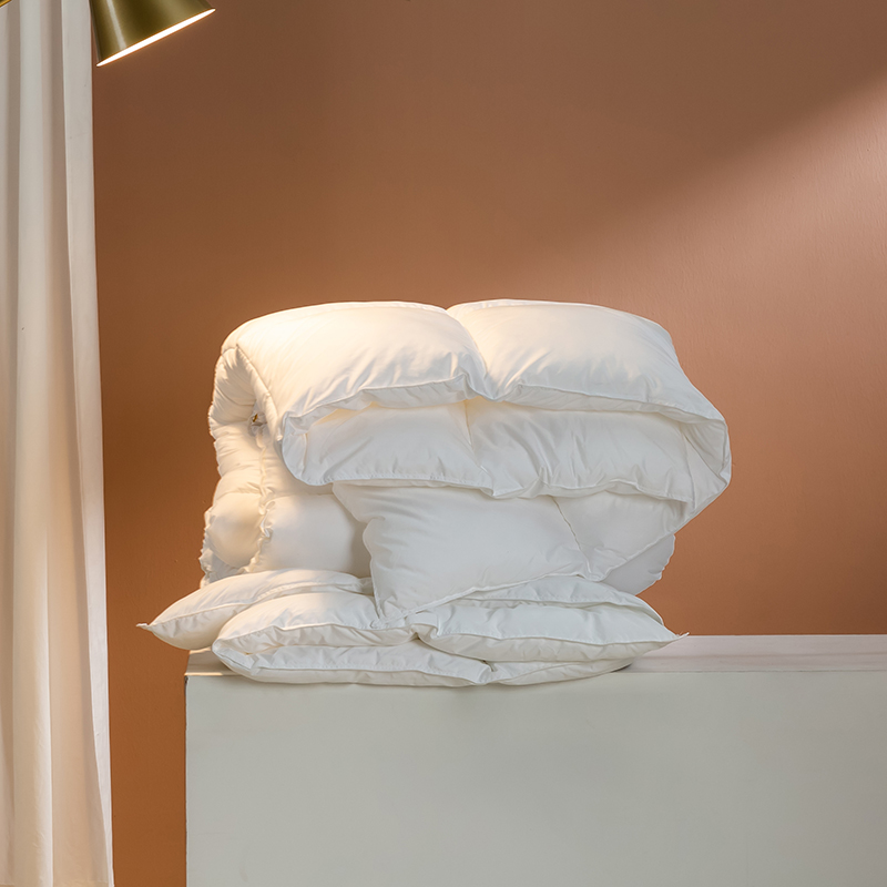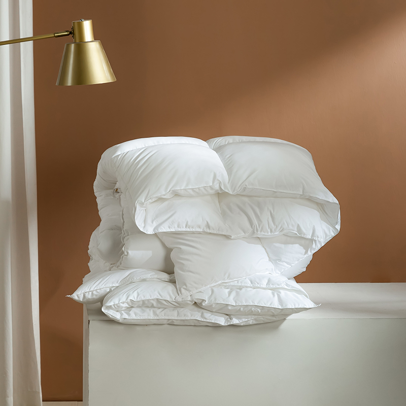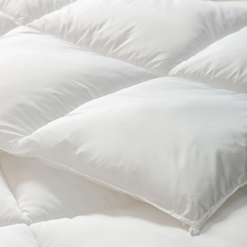 ผ้านวมชิ้นนี้บรรจุด้วยขนห่านคุณภาพสูง มีลักษณะเป็นกระจุกขนาดใหญ่เต็มผืนเพื่อความยืดหยุ่นและความยืดหยุ่นเหนือชั้น โครงสร้างสามมิติตามธรรมชาติของ Goose Down ดักจับอากาศ สร้างชั้นฉนวนที่มีประสิทธิภาพ ช่วยให้มั่นใจได้ถึงความอบอุ่นเป็นพิเศษในคืนฤดูหนาวที่หนาวเย็น ขณะเดียวกันก็รักษาความรู้สึกเบาและไม่บีบอัด ผ้านวมนี้ผลิตจากผ้าฝ้าย 100% ทออย่างแม่นยำโดยมีจำนวนนับสูง (TC) ตั้งแต่ 233 ถึง 300 โดยมีรายละเอียดทางเทคนิคที่สูงกว่านี้อีกเมื่อแจ้งความประสงค์ ผ้าฝ้ายเป็นมิตรกับผิวตามธรรมชาติและระบายอากาศได้สูง ดูดซับความชื้นได้อย่างมีประสิทธิภาพและป้องกันความอับชื้น ทำให้คุณรู้สึกแห้งสบายระหว่างการนอนหลับ เทคนิคการควิ้ลท์ลายตารางหมากรุกแบบคลาสสิกของเราช่วยยึดขนห่านไว้อย่างแน่นหนาภายในตะแกรงเล็กๆ แต่ละเส้น ป้องกันไม่ให้ขนห่านขยับหรือสะสม ทำให้ผ้านวมมีความหนาสม่ำเสมอและให้ความอบอุ่นได้ยาวนาน ทำให้ผ้านวมนี้มีความสวยงามและใช้งานได้จริง